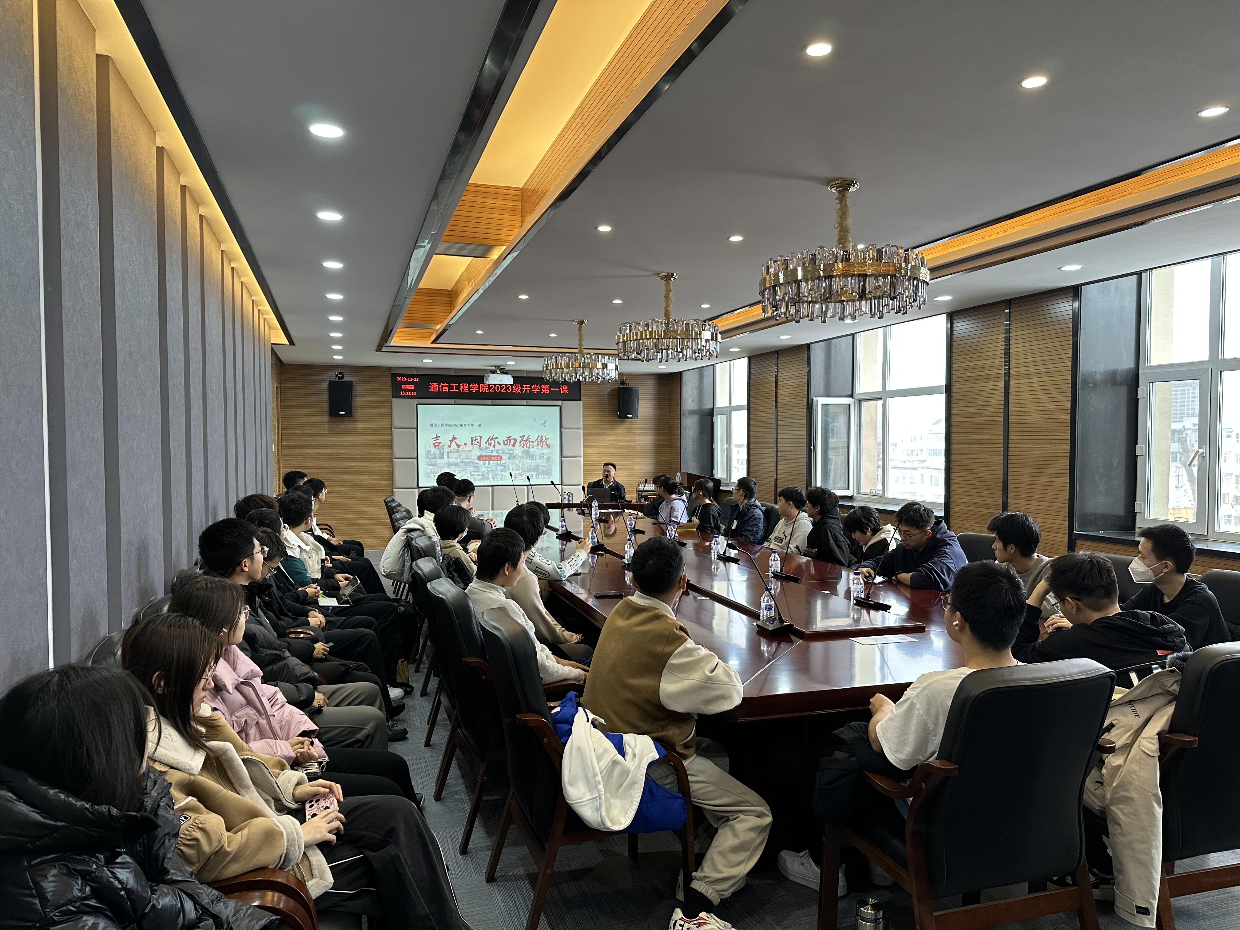 党委书记董宏志以《吉大,因你而骄傲》为主题,为2023级新生讲授了“开学第一课”。学院2023级部分本科生、研究生代表参加了本次活动。活动由学院党委副书记刘星彤主持。