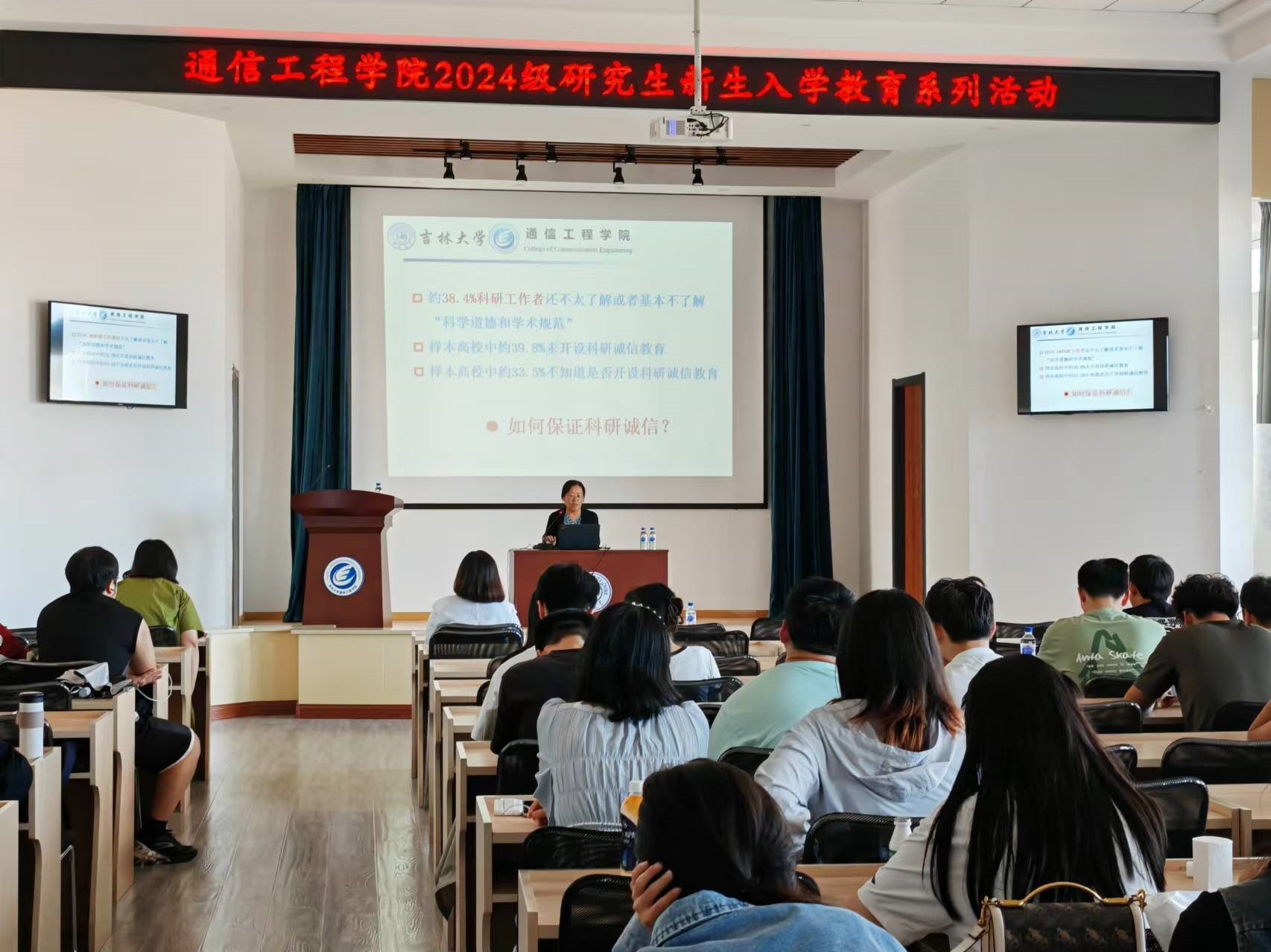 学院马彦教授以案为鉴,阐述了学术不端的恶劣影响,强调学术道德的重要性,提醒新生要严谨分析,确保实验数据的真实性,杜绝一切学术不端行为。随后,她进一步讲解了学术规范,涵盖数据、引文、投稿等环节,呼吁大家要诚实守信,追求真理,崇尚创新,共筑学术净土。