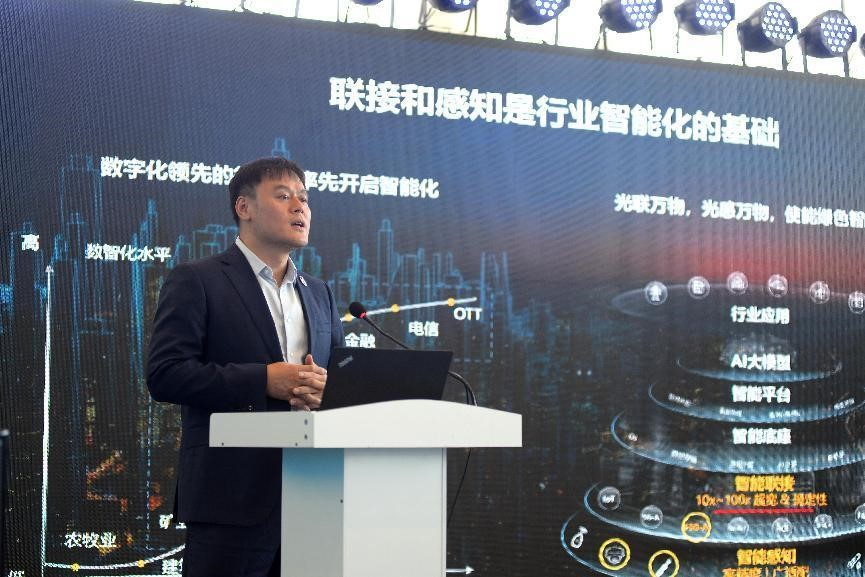 随后,华为光产品线政企领域总裁谷云波做了题为“筑基行业智能化:5G场景下商业模式应用与发展”的报告。谷云波结合F5G Advanced技术在智能联接和感知方面的应用,详细探讨了F5G技术在园区、交通和电力等领域的解决方案和实际成果。