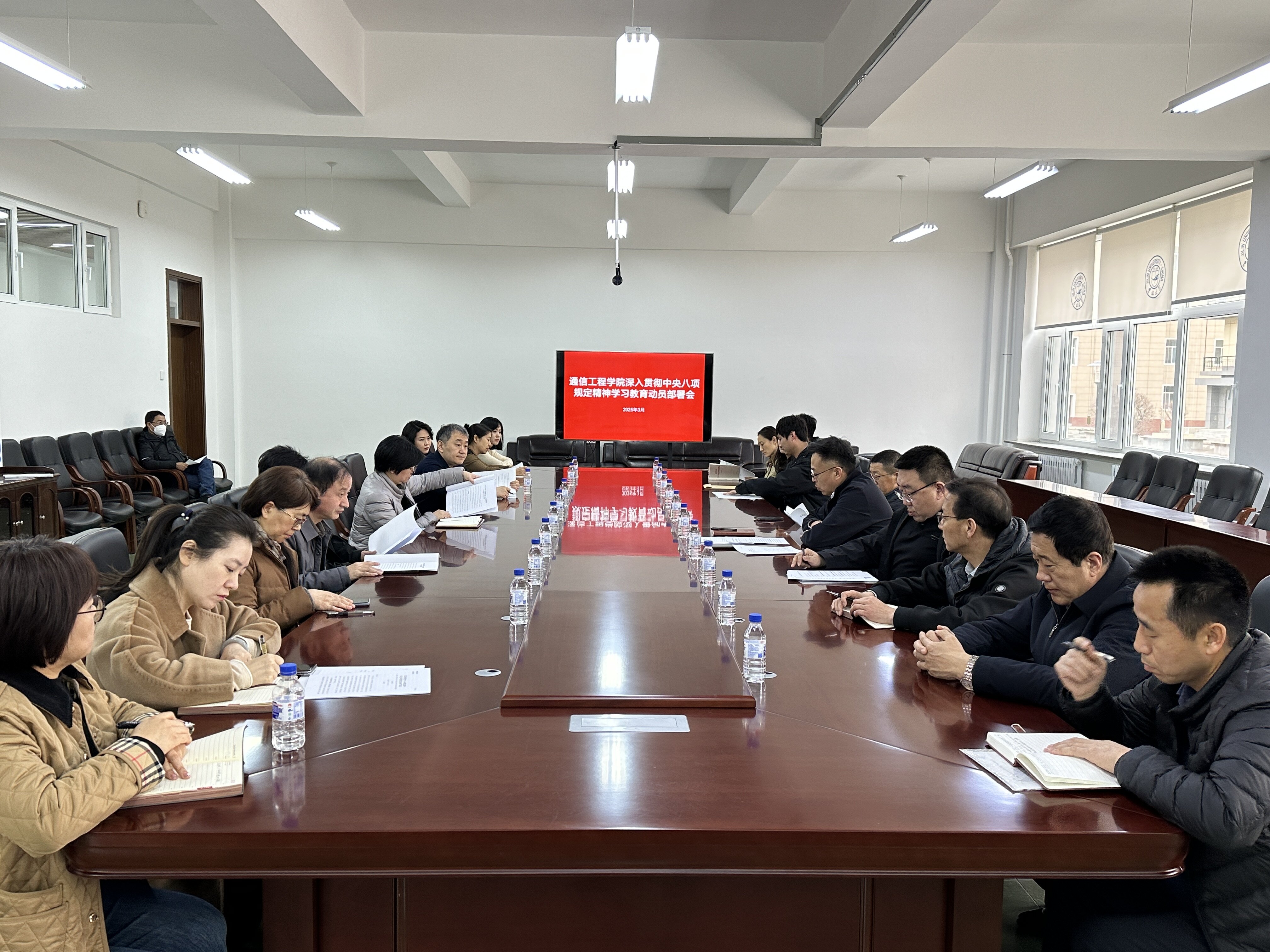 会上,全体人员集中学习了《习近平总书记关于党的建设的重要思想概论》。副院长王雪领学了《绪论》,副院长高博领学了第一章《坚持和加强党的全面领导》。随后,董宏志同志传达了2025年学校工作会议上的讲话精神。