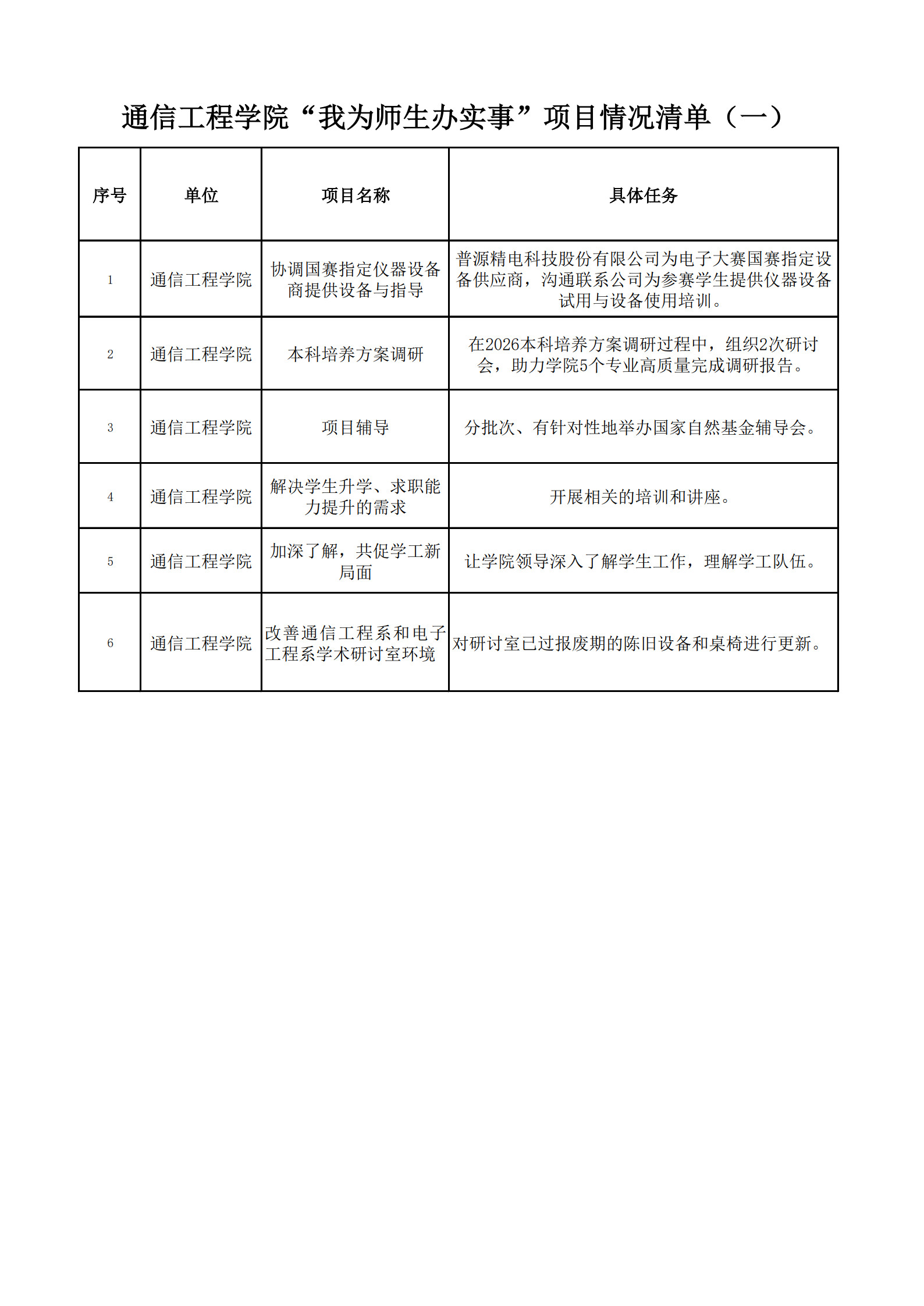葵司 “我为师生办实事”项目情况清单